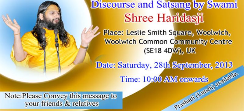 ![]() Philosophical Discourse and Satsang by Swami Shree Haridas Ji at Leslie Smith Square Woolwich,woolwich common community center(SE18 4DW),UK on 28th September 2013 at 10:00 A.M onward