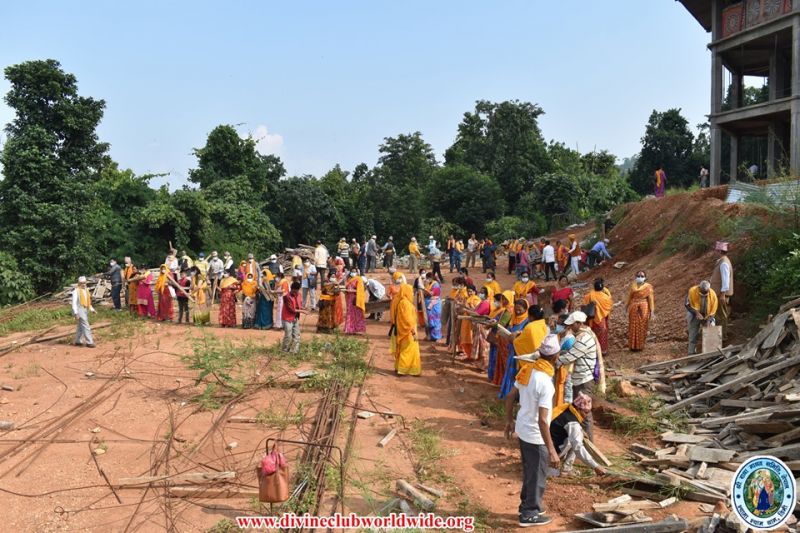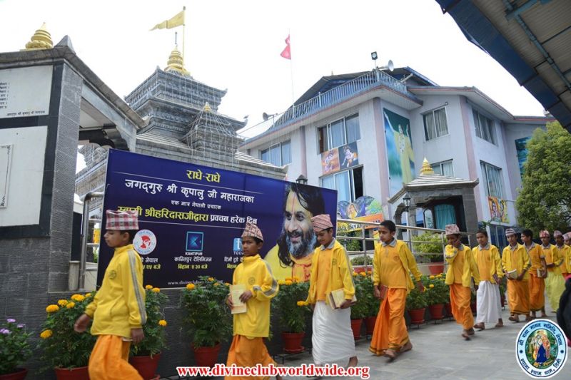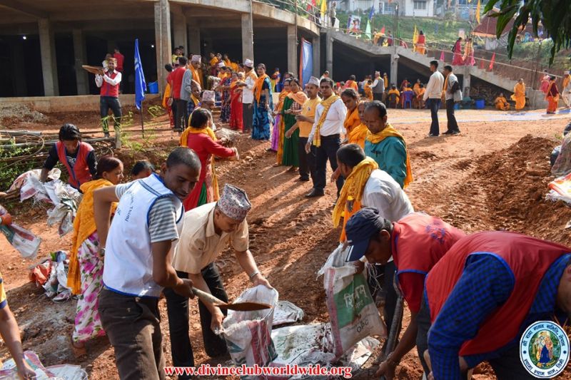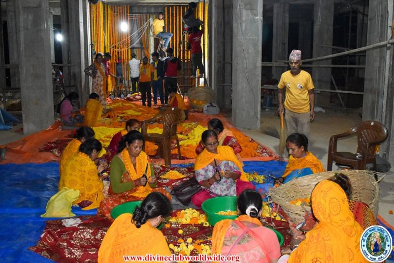 Devotees performing their selfless sewa for the preparation of Sharad Purnima at Jagadguruttam Samadhi Mandir, Hetauda...