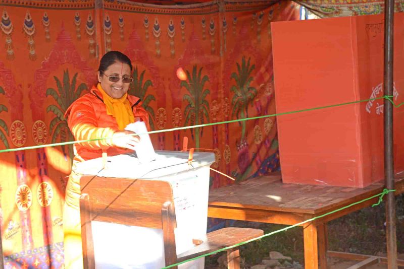 Respected Sangita Didi Casts her Ballot for the second phase of provincial and parliamentary elections, on Thursday, December 7,2017 (2074-08-21)....