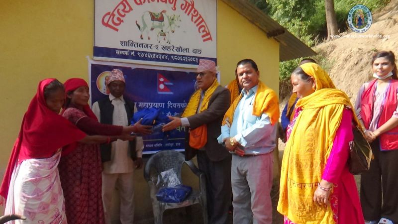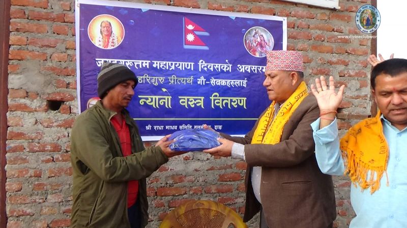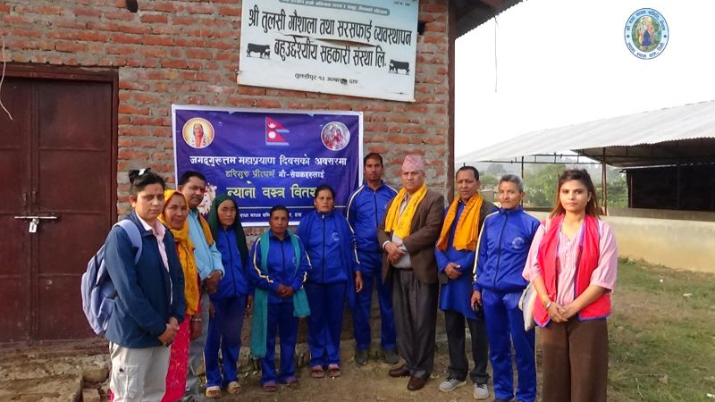 Shree Radha Madhav Samiti Tulsipur distributes warm cloths to the cow-sevaks working in several gaushalas in Hariguru Preityarth Dang in honour of Jagadguruttam Mahapr...